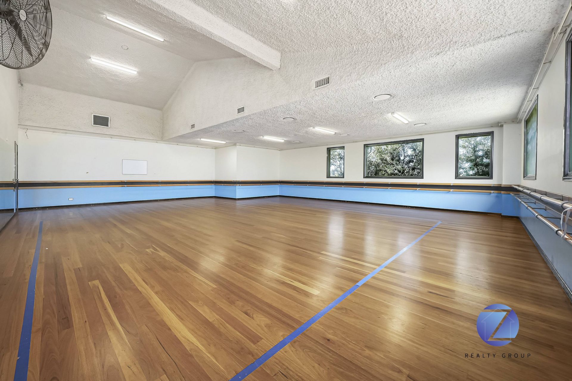 - 4 Large, Bright Studios with full-length mirrors, barres, and professional blackbutt timber dance flooring-double gyprock and insulated walls ensure soundproofing, making these spaces perfect for fitness, art, or creative endeavours.