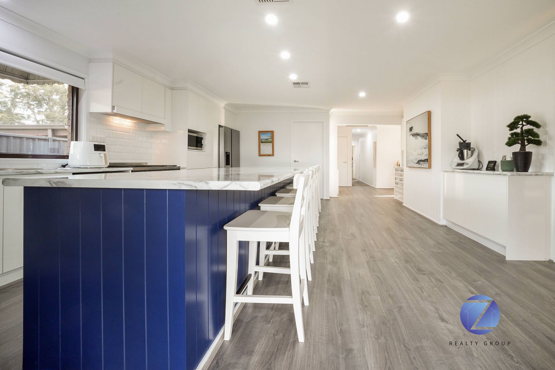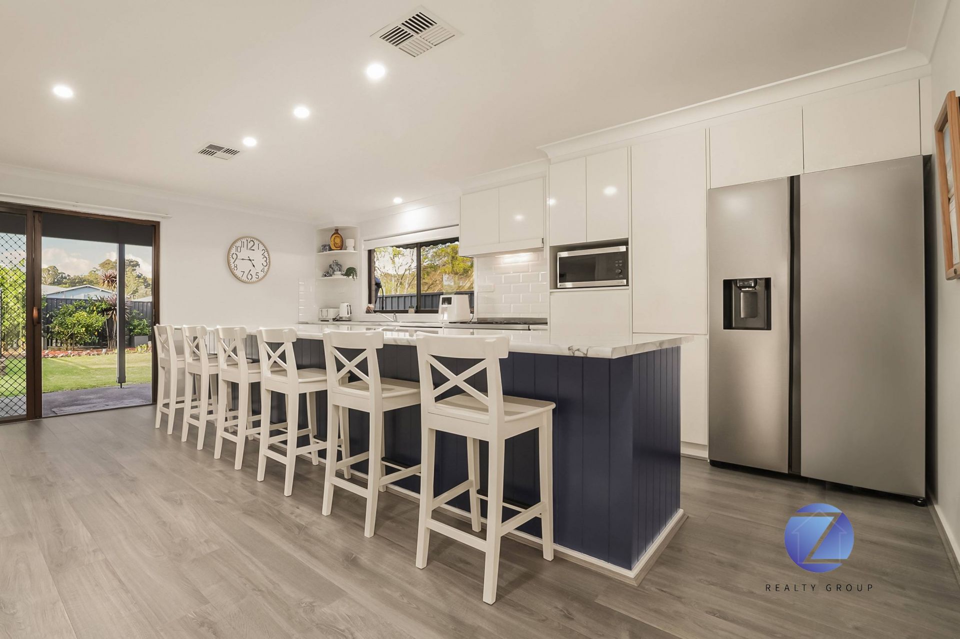 • Ultra-modern polyurethane kitchen with quality appliances, extensive drawer storage and a breakfast bench for six